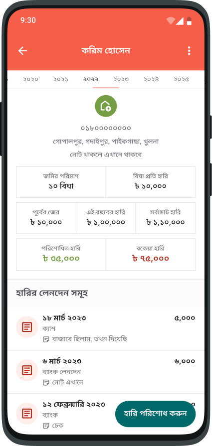 ডিজিটাল হারি খাতা। জমির হারি পরিশোধ করুন এবং ট্র্যাক রাখুন।