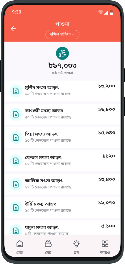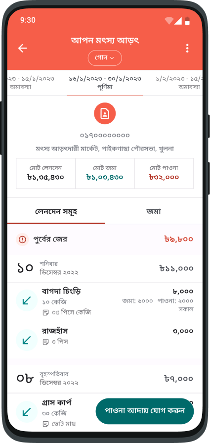 ক্রয়, বিক্রয় সহ সব রিপোর্ট দেখুন এবং জেনে নিন ঘেরের সর্বশেষ অবস্থা।